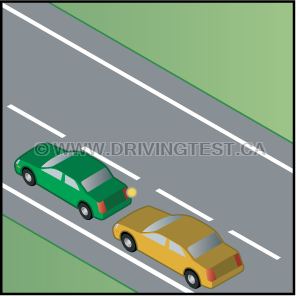 How long of a gap should there be between the rear bumper of the vehicle in front of you passing a point and your front bumper passing the same point? |