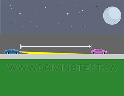 How much traveling distance should you be able to see in front of your while driving at night? |